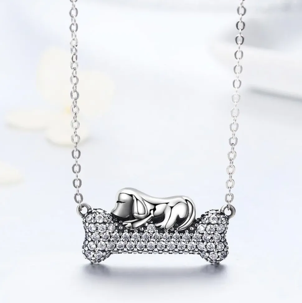 Dog Sleeping on Bone Unique Necklace for Dog Lovers 925 Sterling Silver
