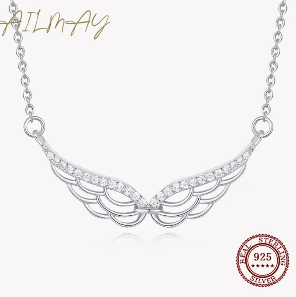 Elegant Angel Wing Necklace in Fine 925 Sterling Silver with CZ