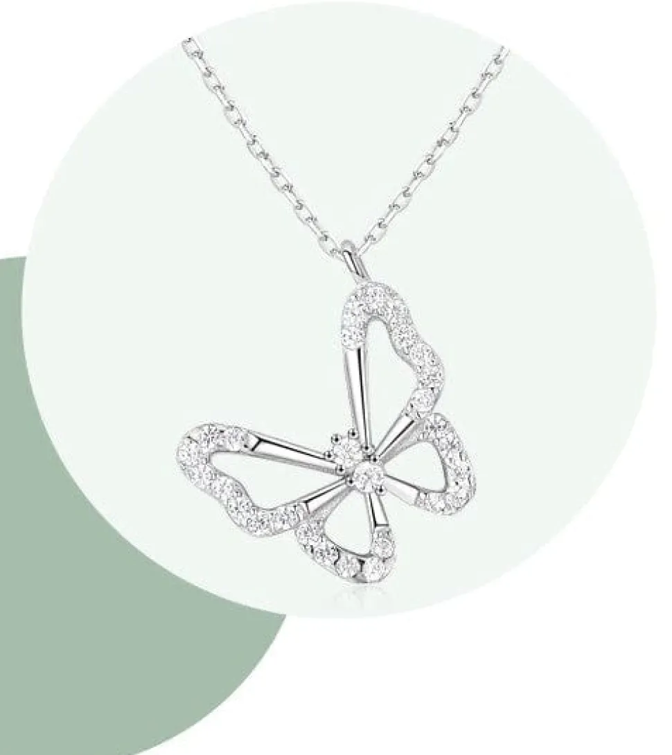 Elegant Butterfly Necklaces and Ring in Fine 925 Sterling Silver with CZ
