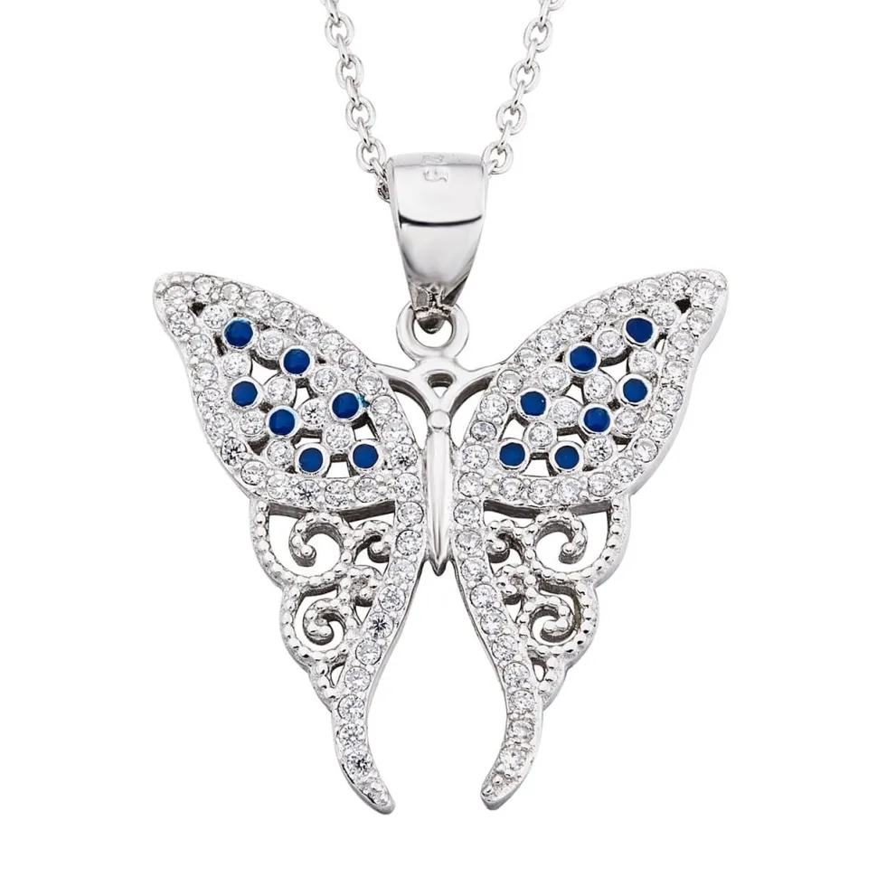 Butterfly Necklace with Cubic Zirconia Sterling Silver