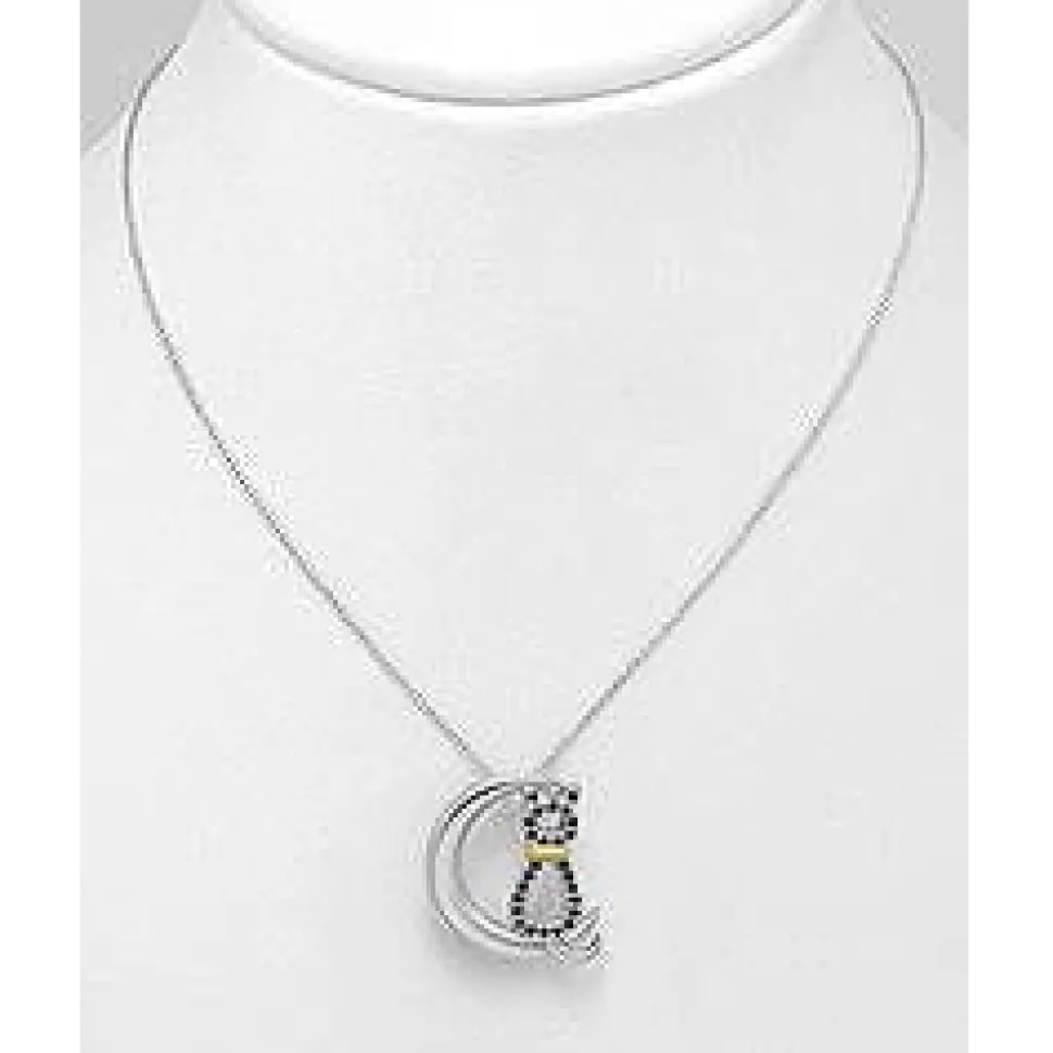 Cat in the Moon Necklaces with CZ in solid 925 Silver, Elegant and Sweet!