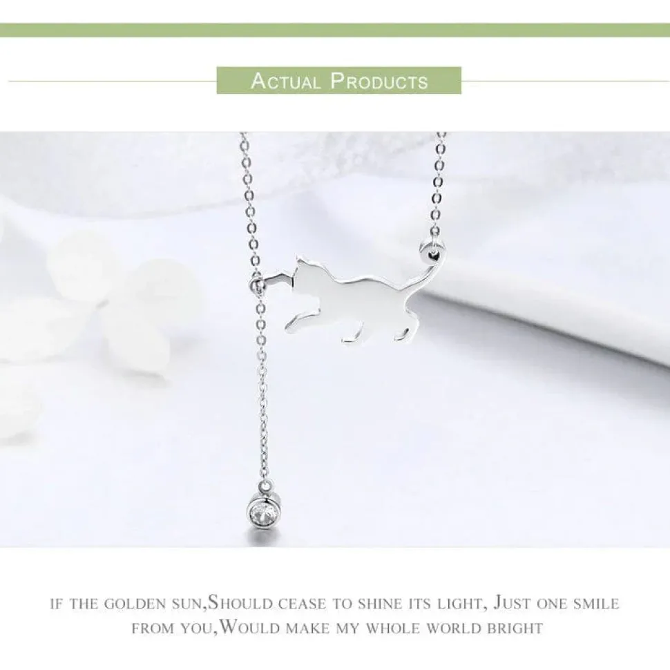 Cat Necklace Sterling SIlver with CZ Ball Adjustable 18″ Chain