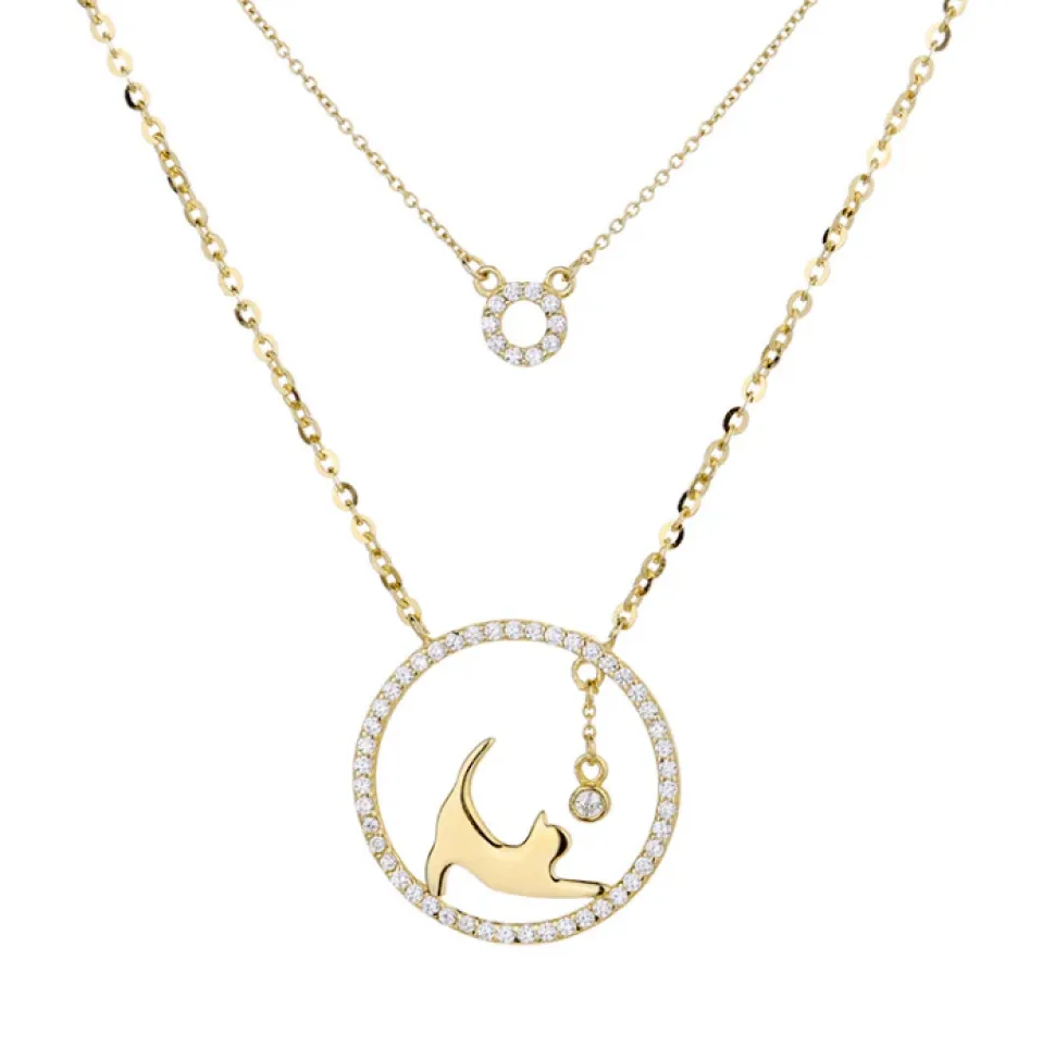 Cat Playing with Ball in a Circle Necklace, 2 Layers