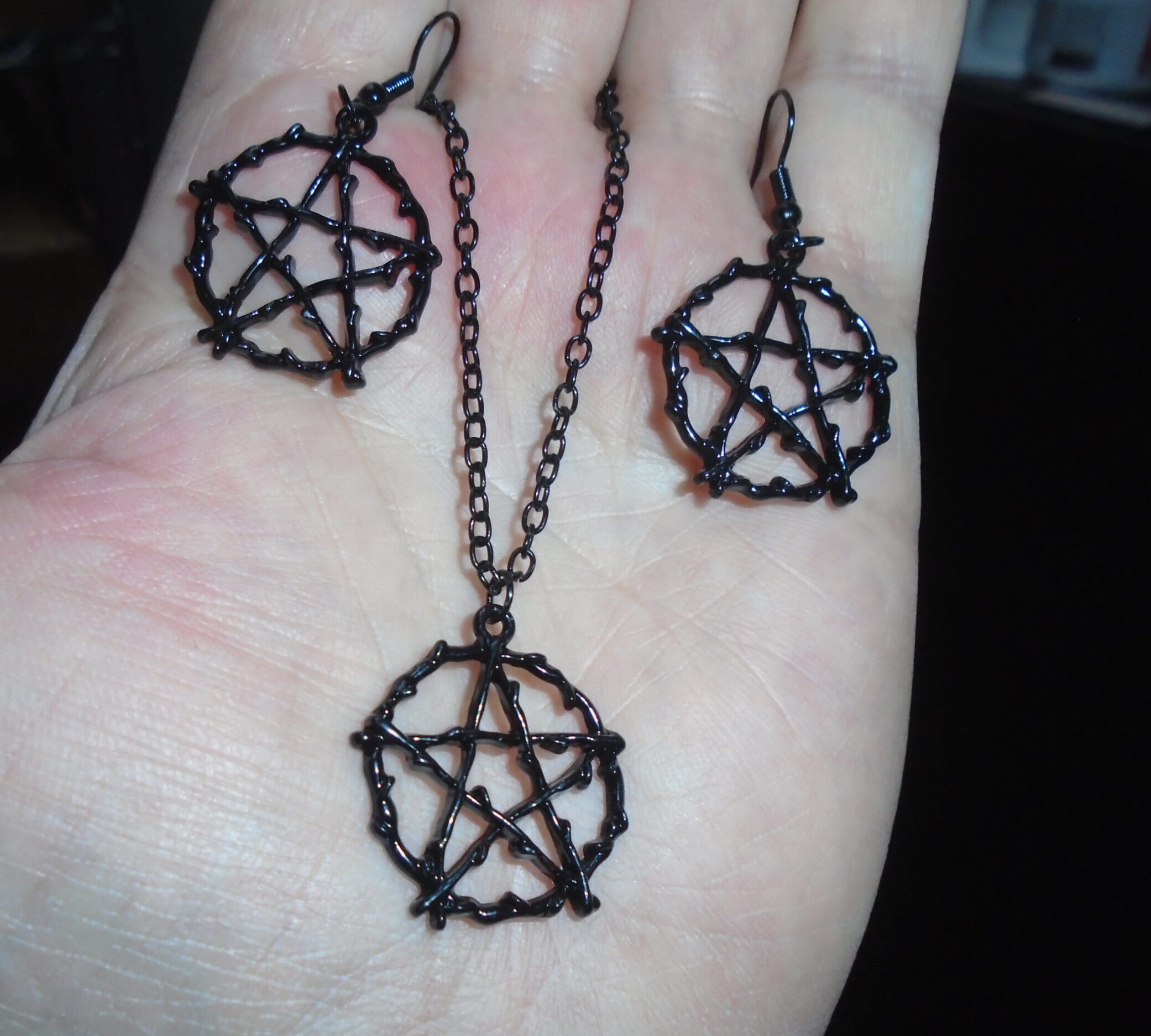 Black Pentagram Earring Necklace Set