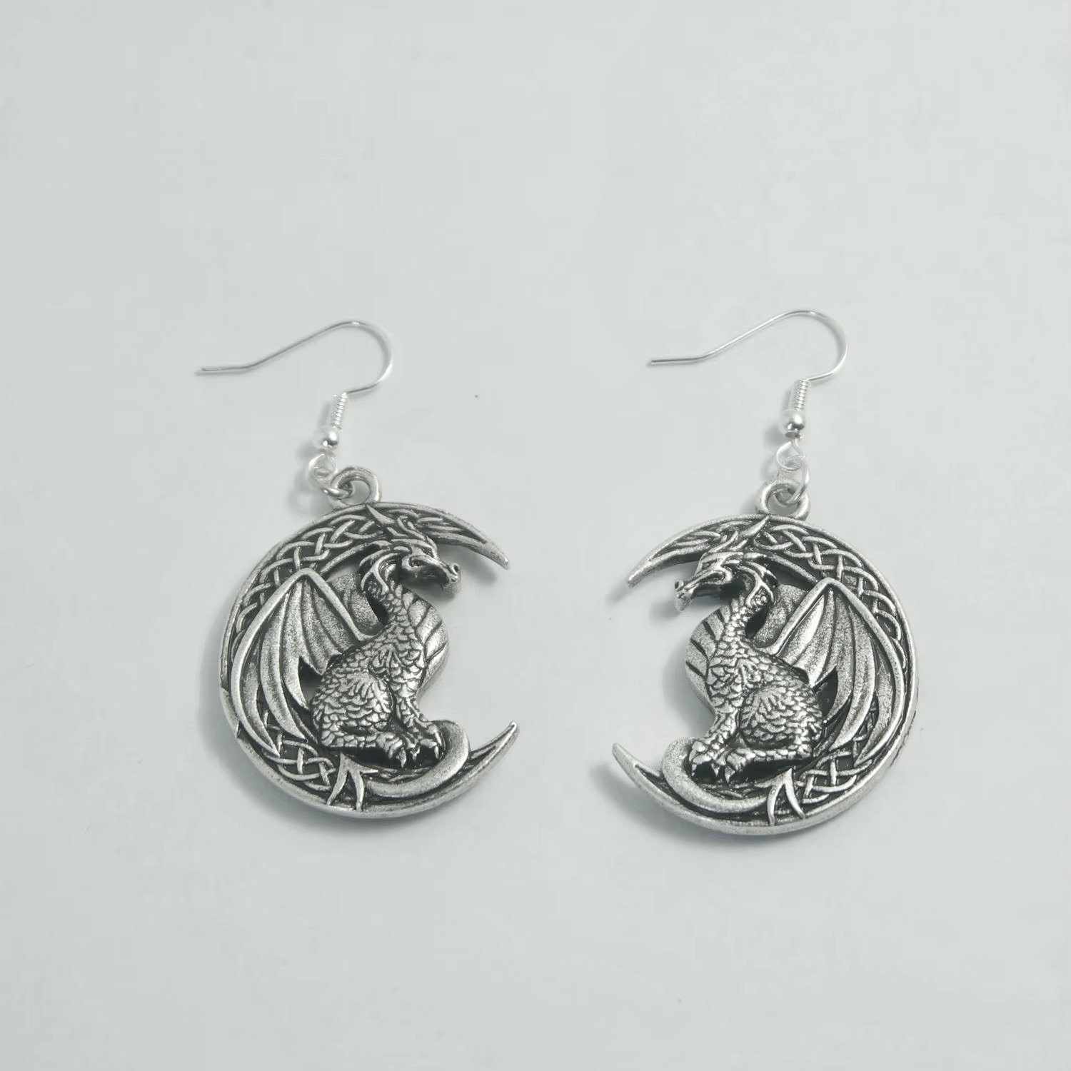 Celtic Crescent Moon Dragon Earrings