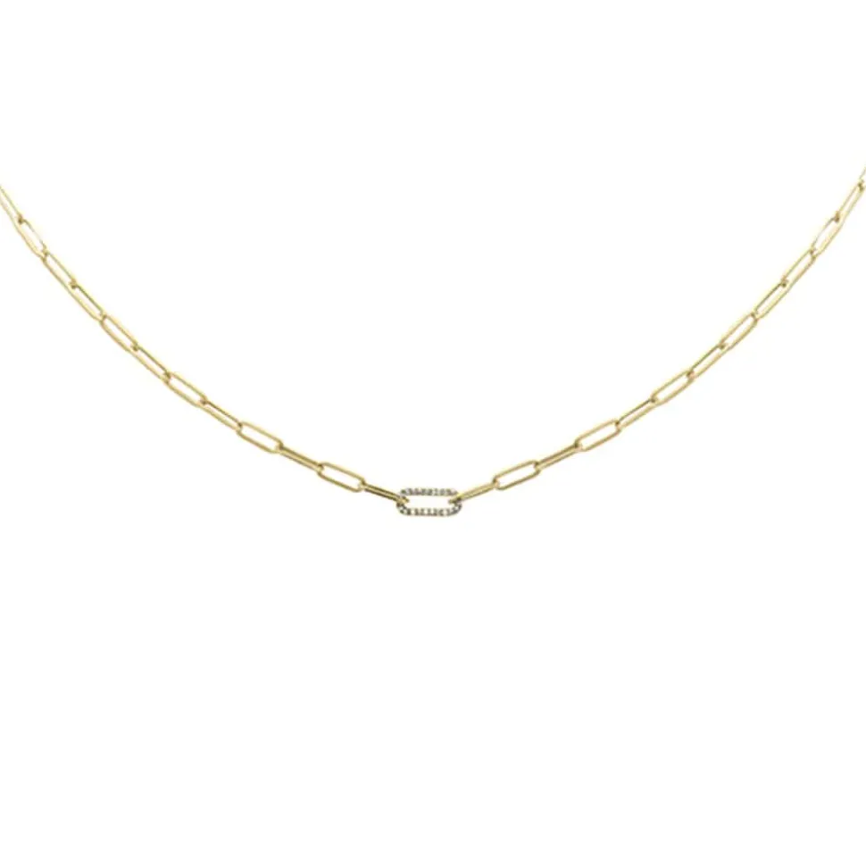 .06ct G SI 14K Yellow Gold Diamond Paper Clip Pendant Necklace 18″ Long