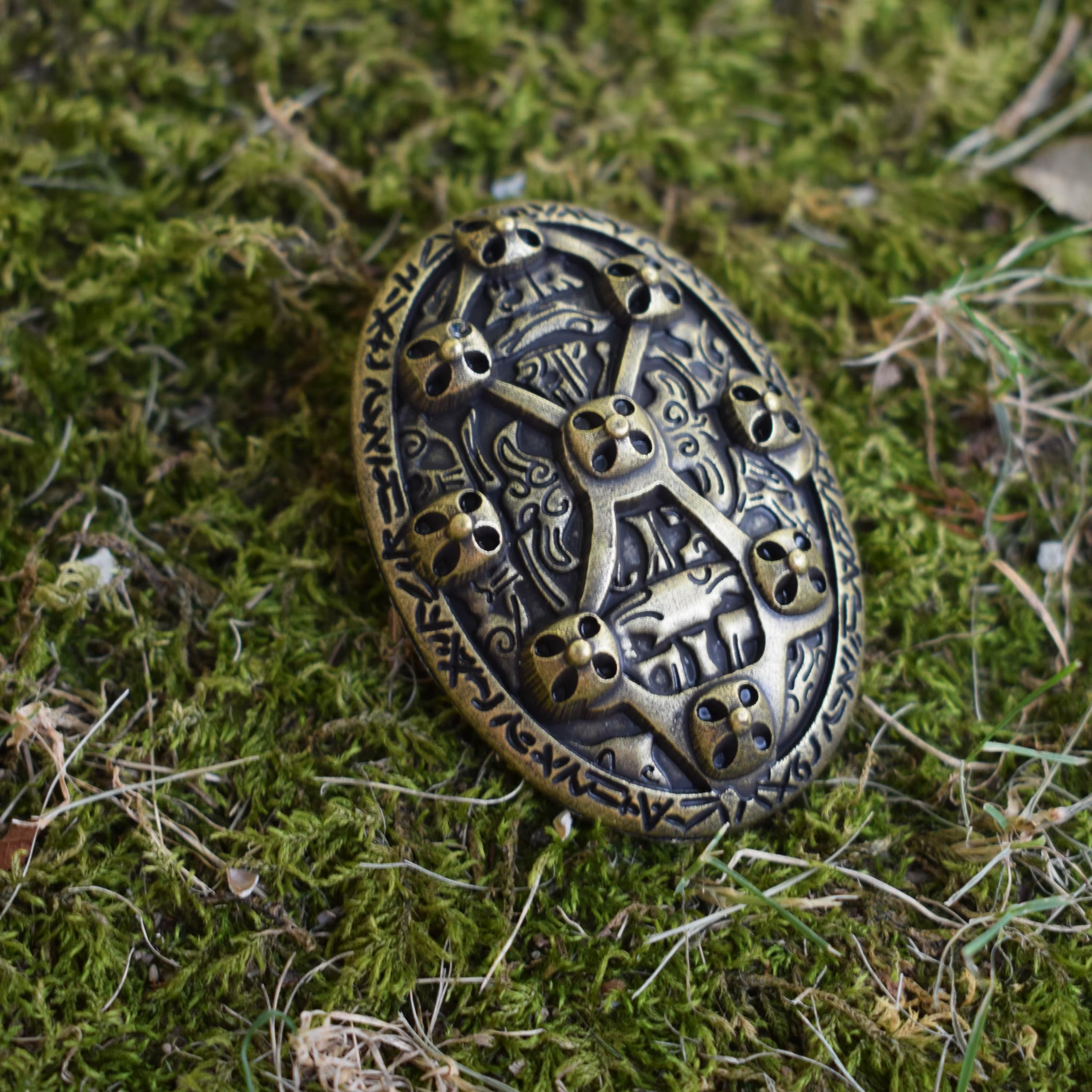 Norse Silver Tone Tortoise Viking Shield Brooch