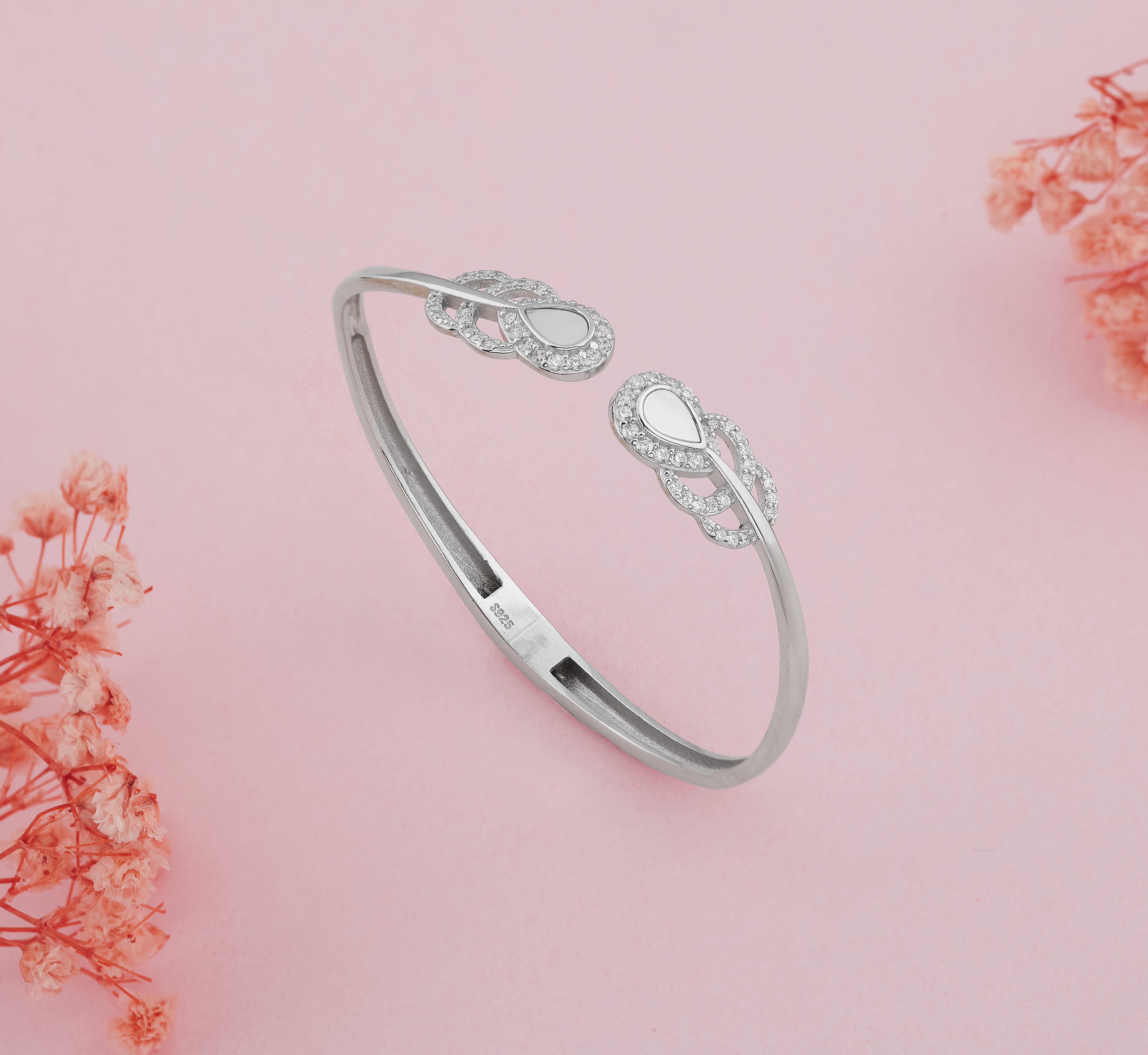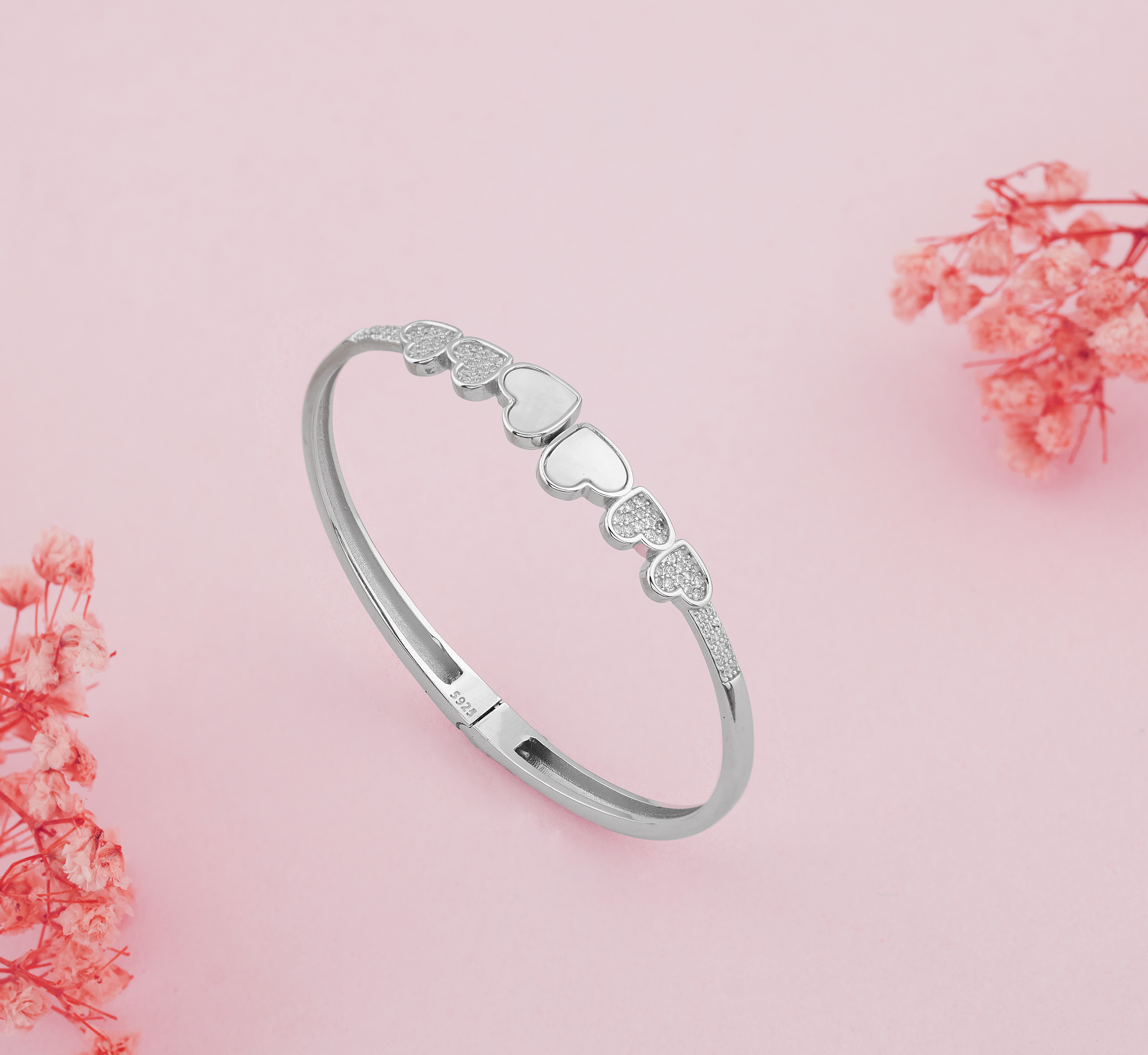925 Sterling Silver Ladies Kada – Elegant Heart Motif