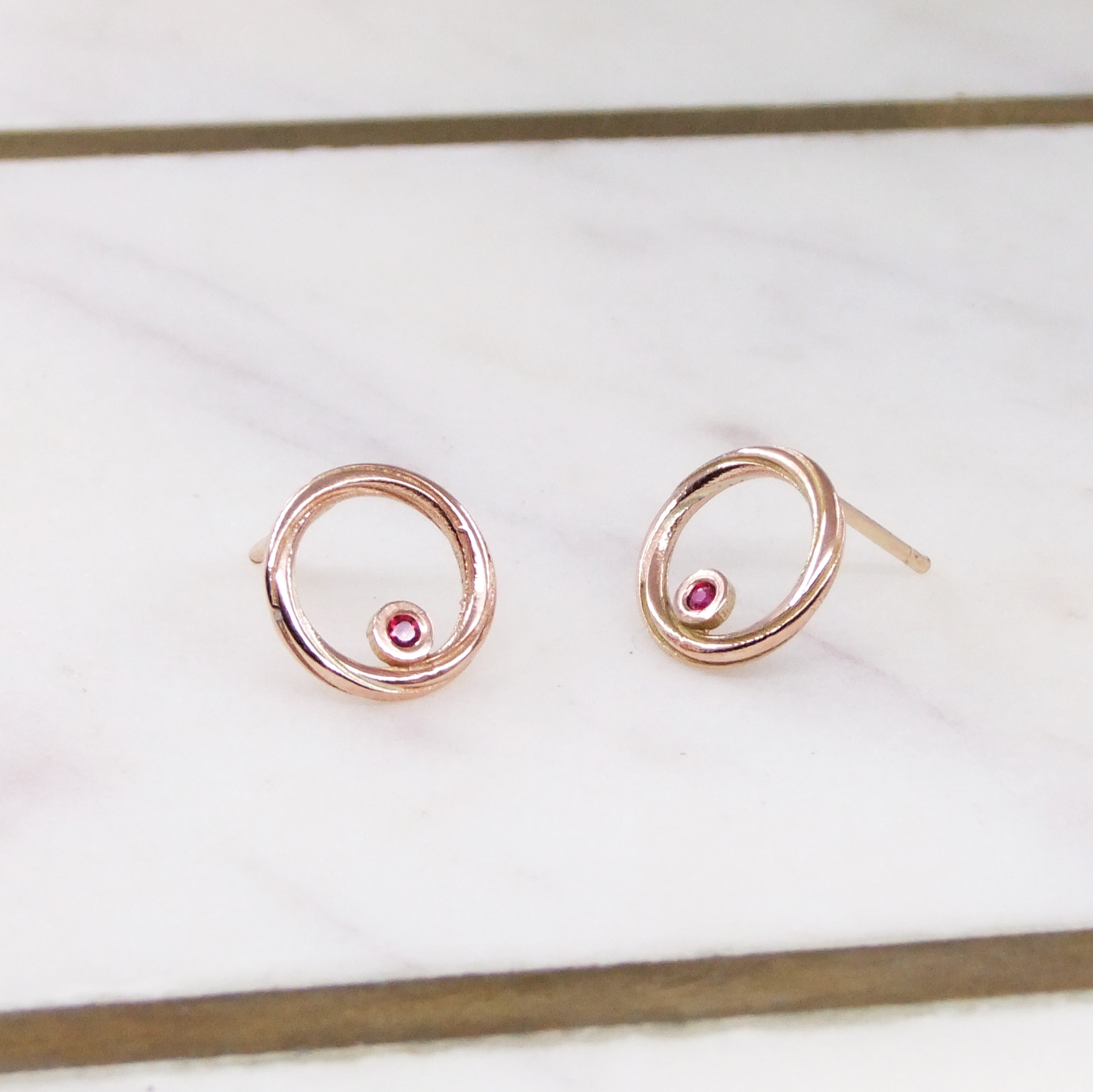 9ct Rose Gold & Ruby Twist Continuum Tiny Earrings