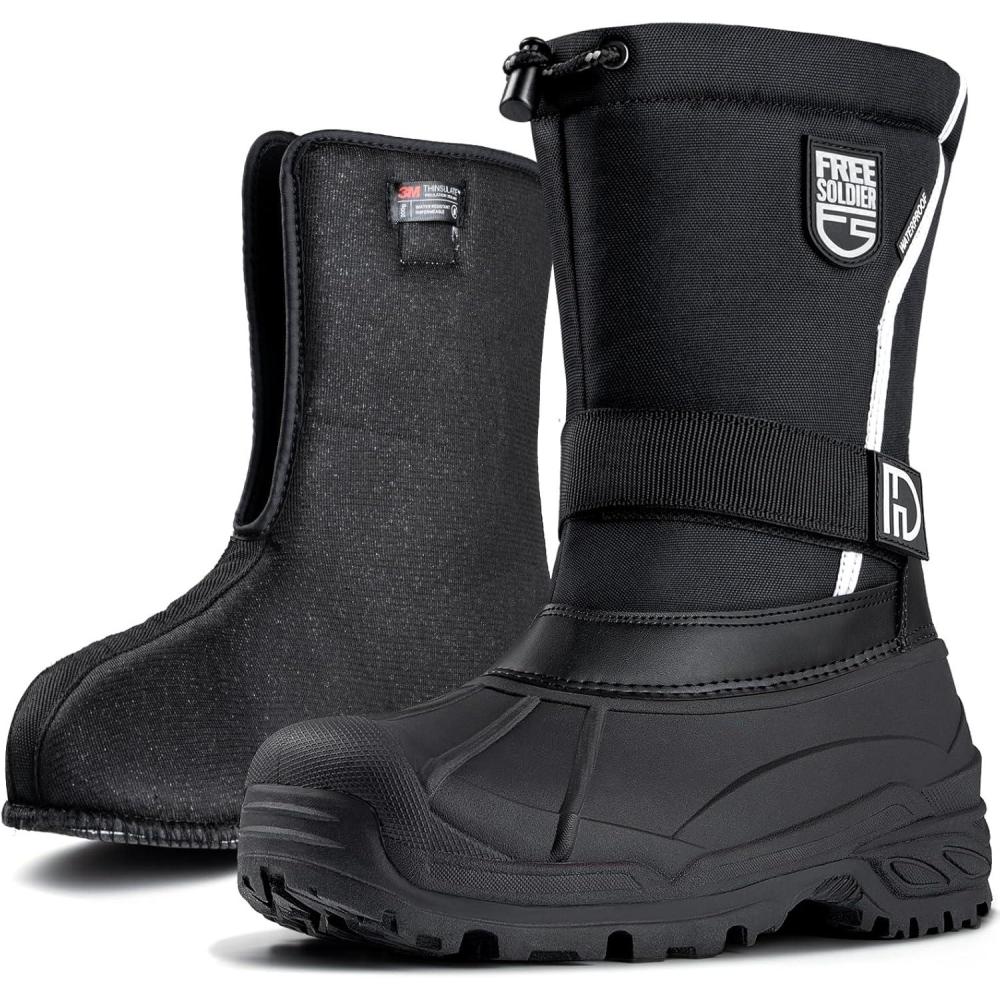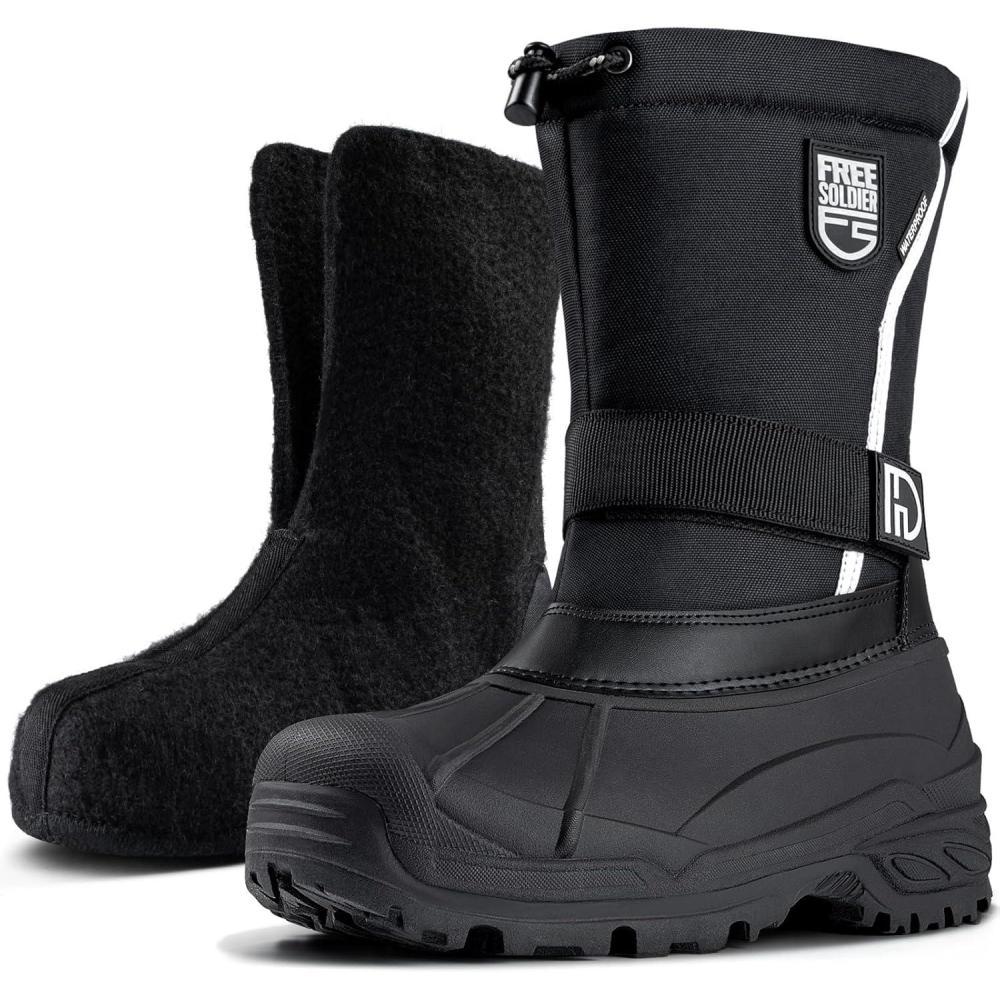 FREE SOLDIER Mens Snow Winter Boots for Men Warm Fleece Lining Winter Ski Shoes Waterproof Insulated Booties(Black)
