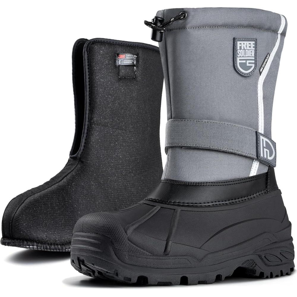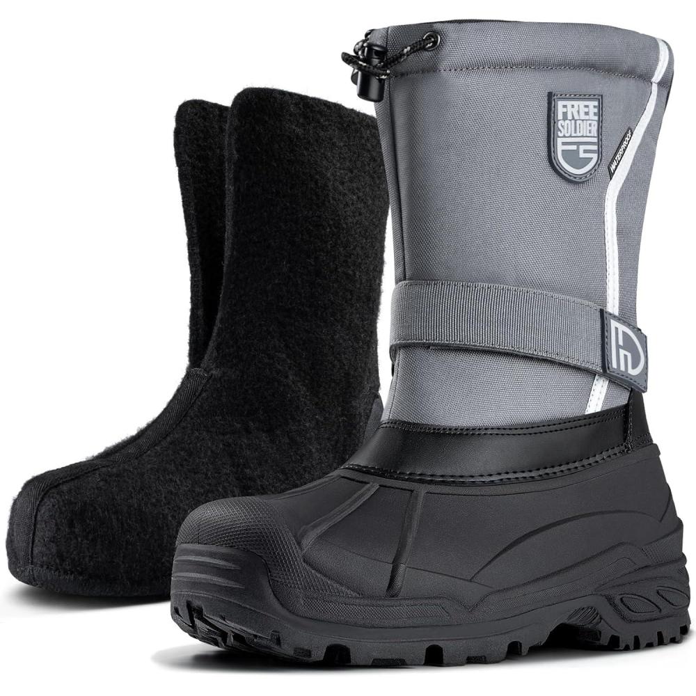 FREE SOLDIER Mens Snow Winter Boots for Men Warm Fleece Lining Winter Ski Shoes Waterproof Insulated Booties(Grey)