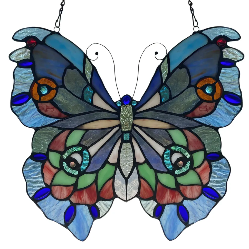 Blue or Colorful Butterfly Tiffany Style Stained Glass Window Hanging 12.5″